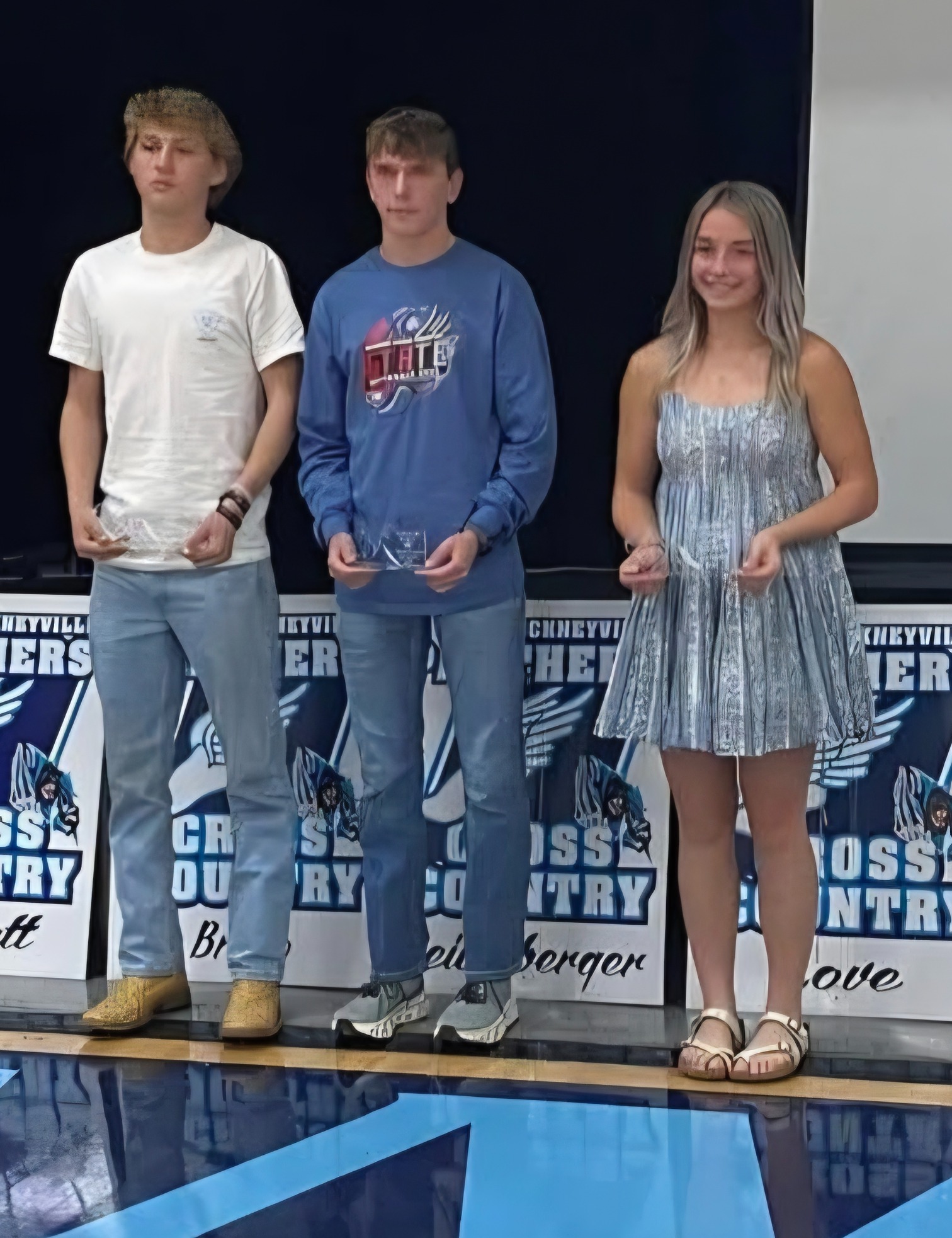 Award Winners. Landen Boman is Boys MVP, Jessi Baggett is Girls MVP, and Cale Schneider is "Guttiest Runner".